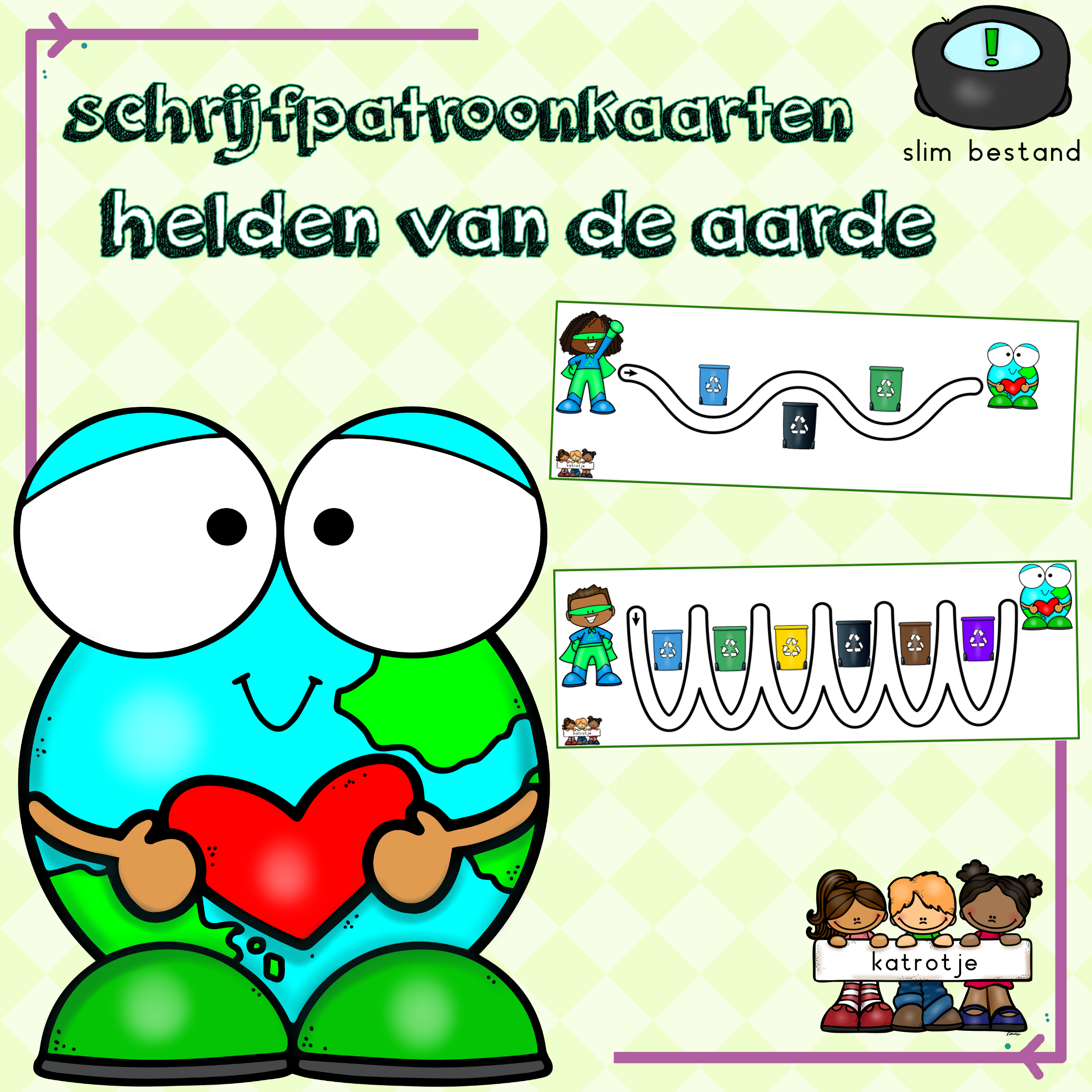 schrijfpatroonkaarten: helden van de aarde