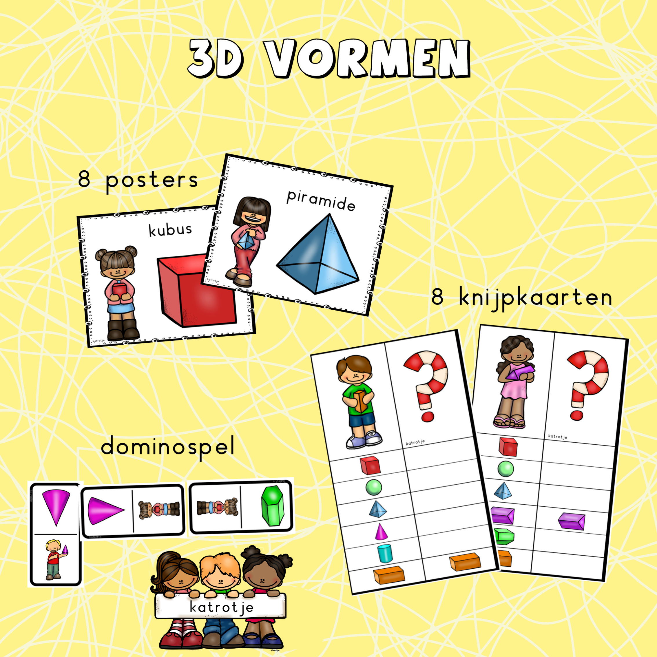 - 8 posters met 3D vormen
