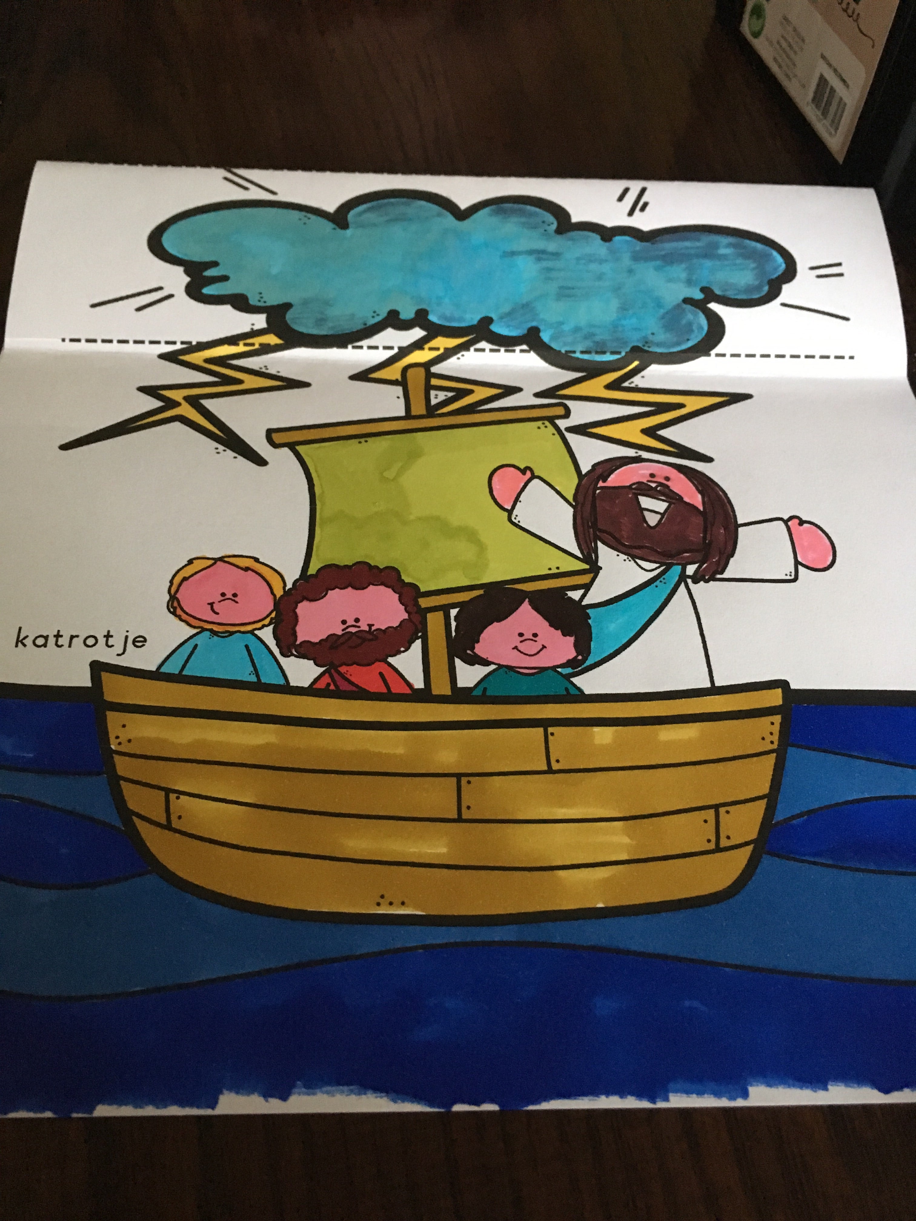 - het bijbelverhaal Storm op het meer als kleurplaat (6 afbeeldingen)