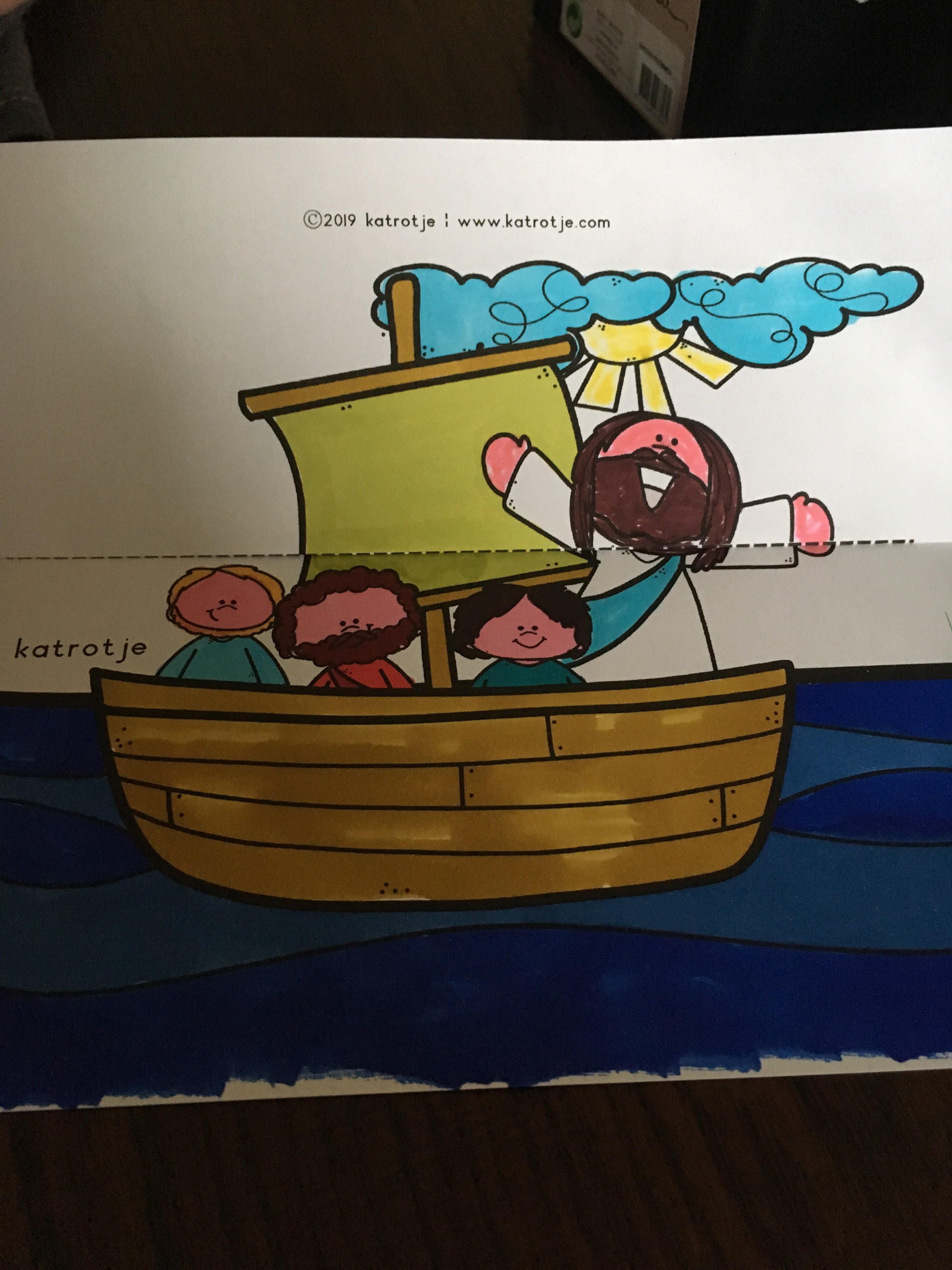- het bijbelverhaal Storm op het meer in kleur (6 afbeeldingen)