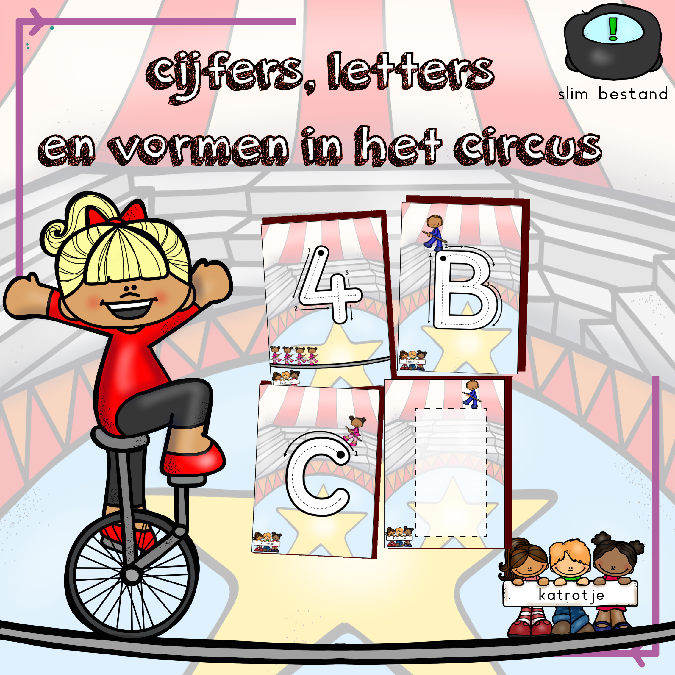 Ontdek samen met de acrobaat cijfers, letters en vormen!