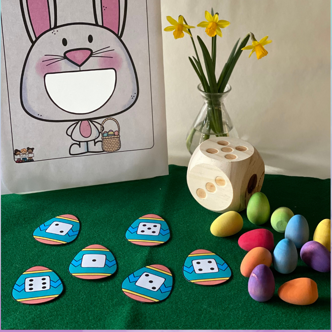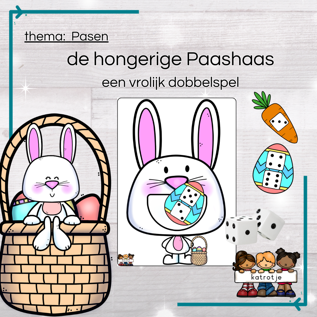 In deze bundel vind je een schattige hongerige Paashaas. Rol met de dobbelsteen om te ontdekken welk paasei de Paashaas mag opeten.