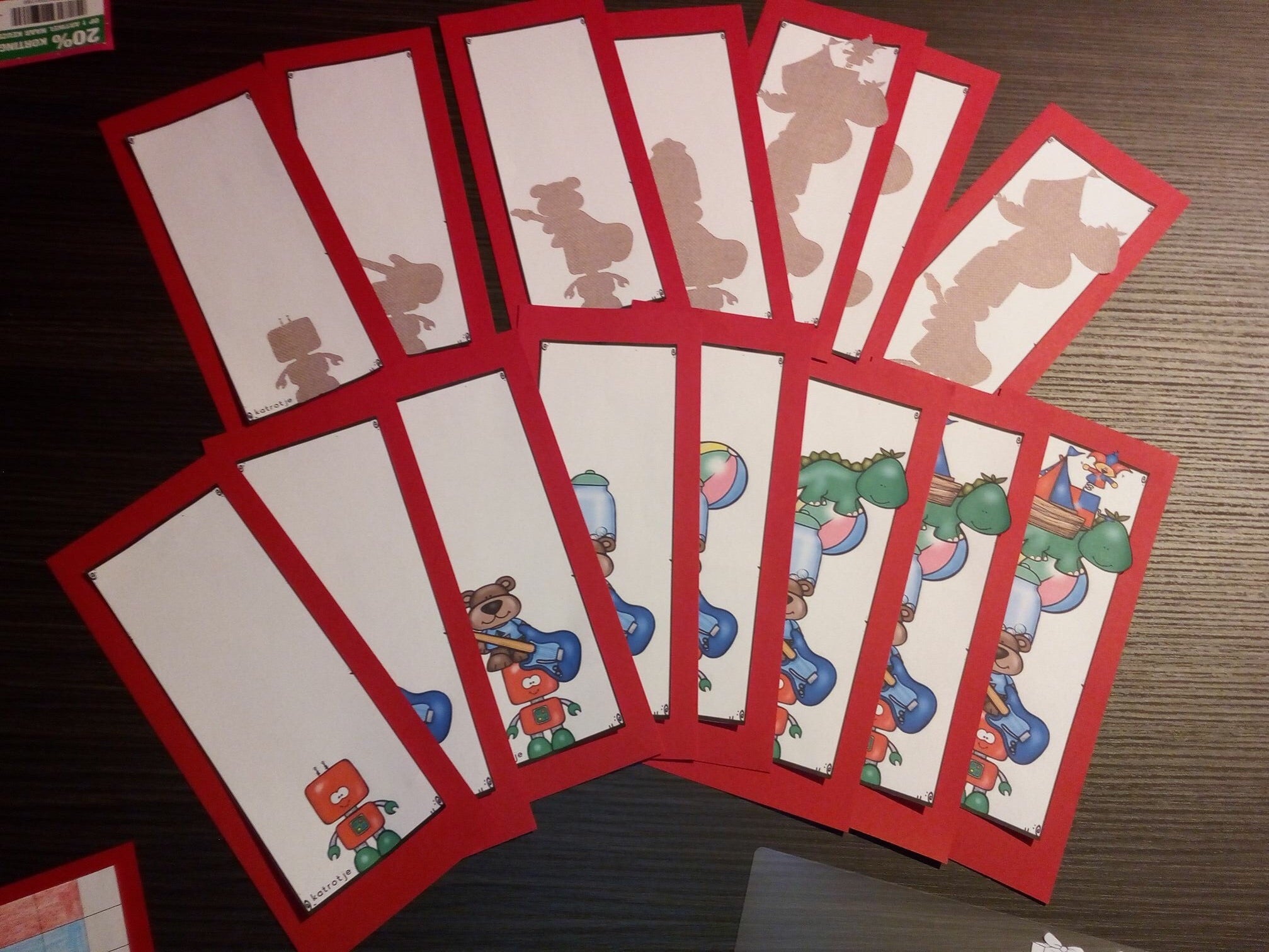 - 64 stapelkaarten met verschillende cadeautjes (in kleur of in de zak als schaduwbeeld)