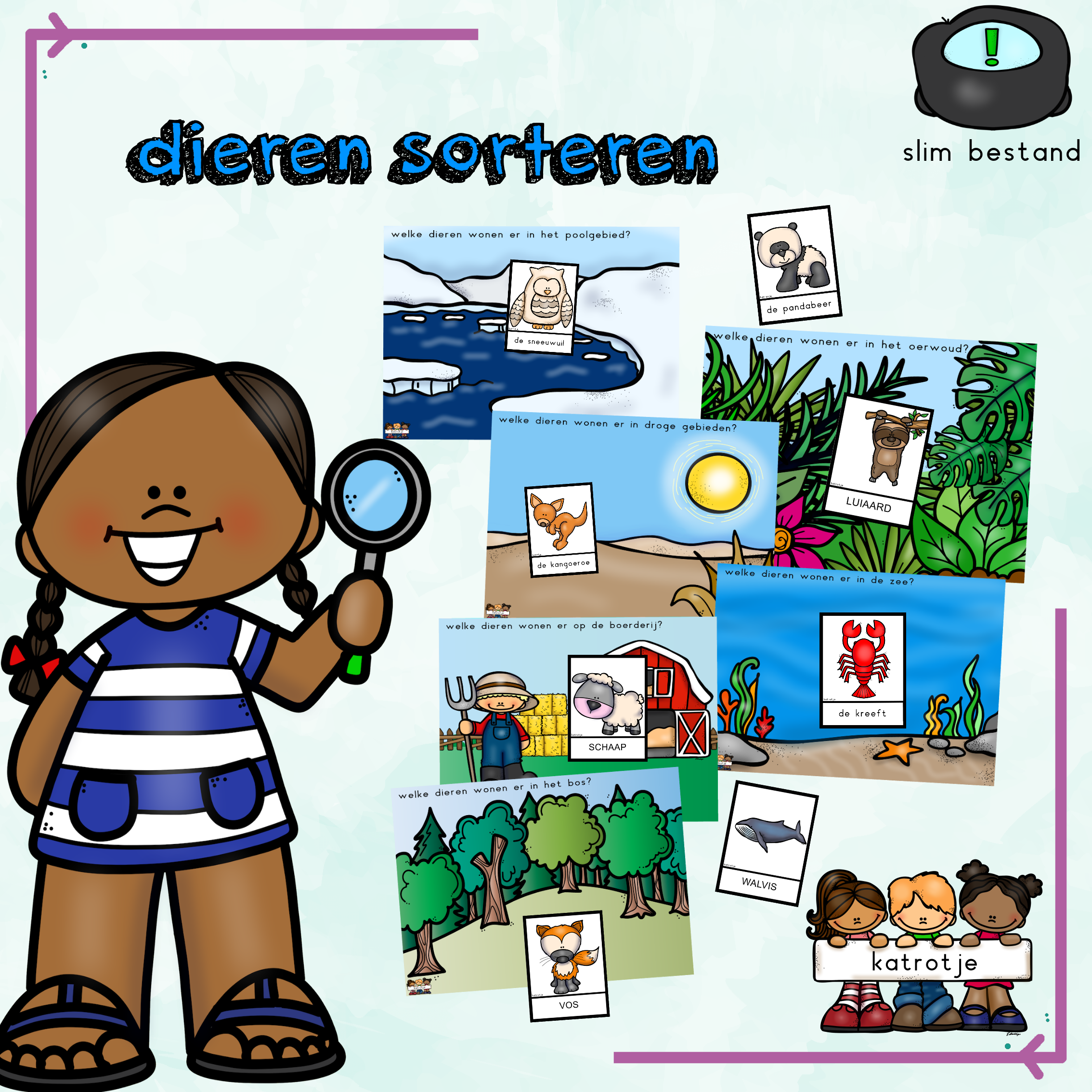 ontdekt samen met de kinderen 60 geweldige dieren en plaats hen in de juiste leefwereld.