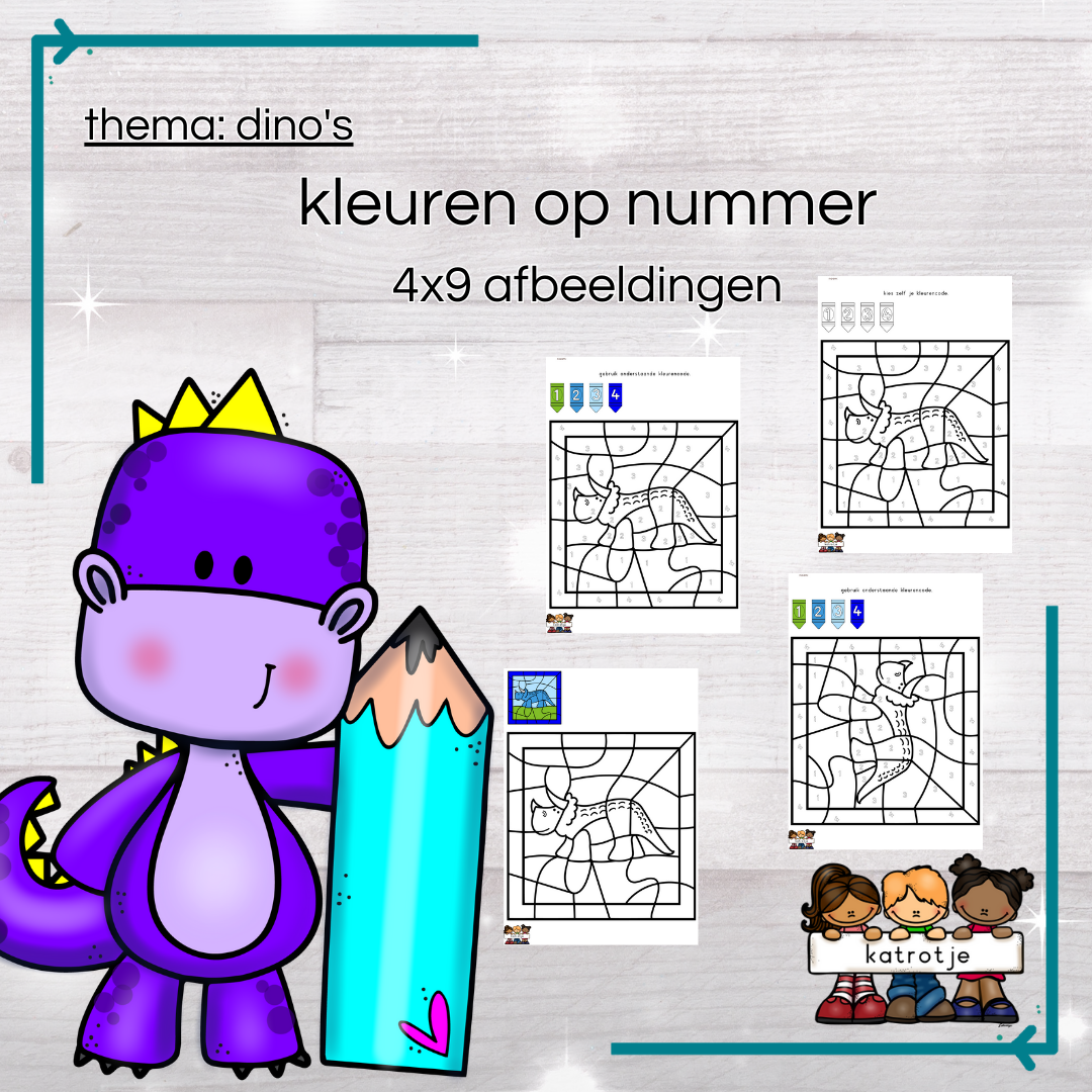 dino's: kleuren op nummer (4x9 afbeeldingen)