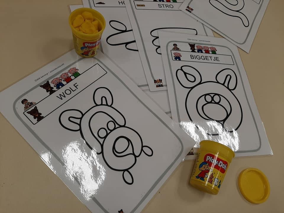 Dit digitale PDF bestand bevat verschillende kleikaarten rond het sprookje de wolf en de drie biggen
