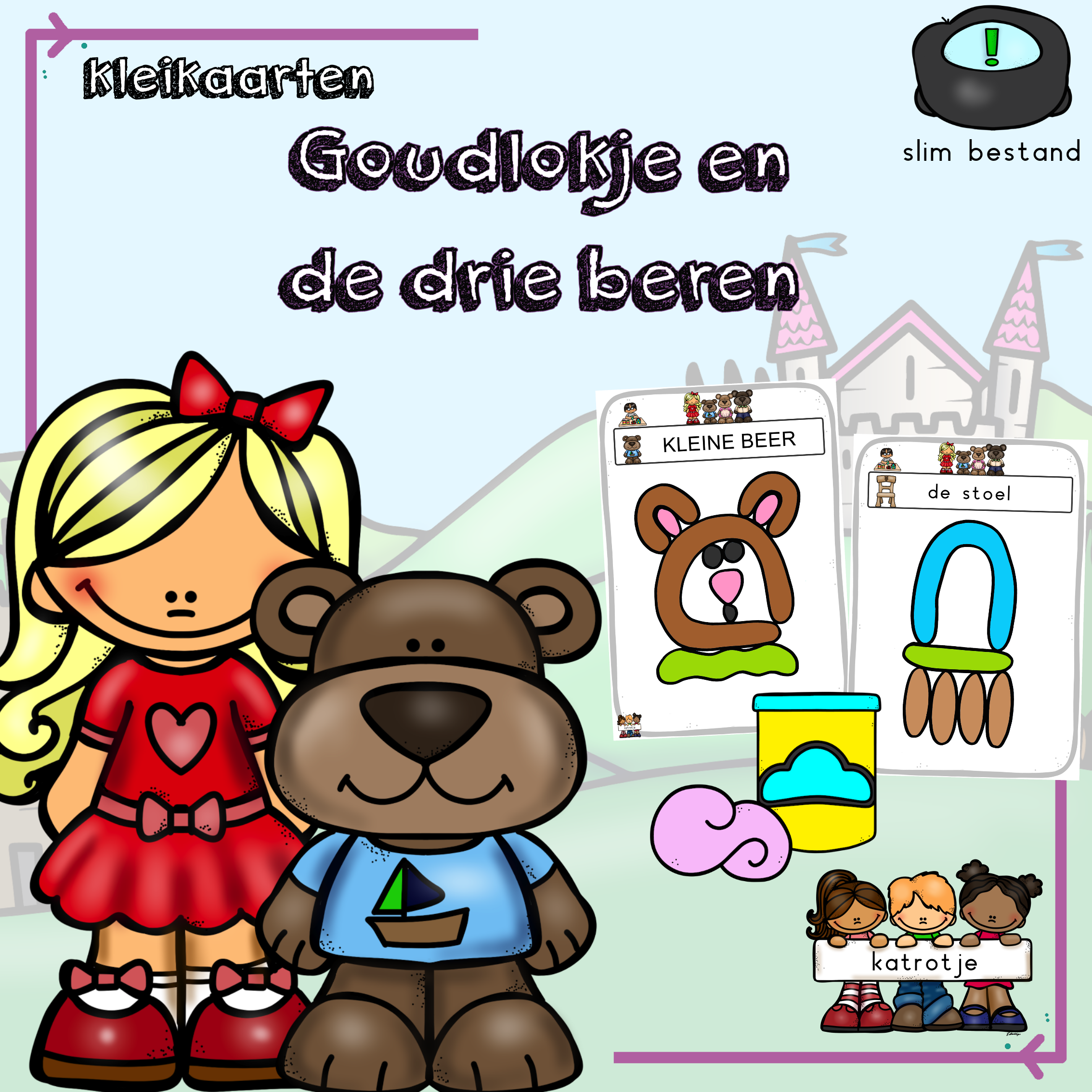 Dit digitale PDF bestand bevat verschillende kleikaarten rond het sprookje Goudlokje en de drie beren