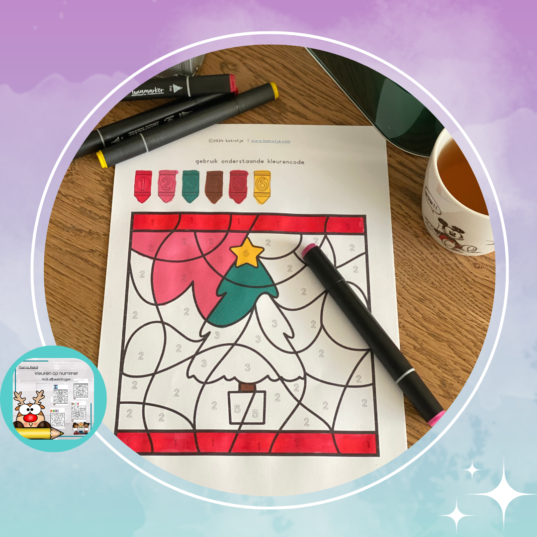 - kleuren op nummer waarna je het blad moet draaien om de afbeelding te ontdekken.