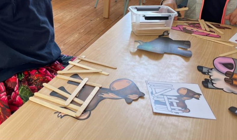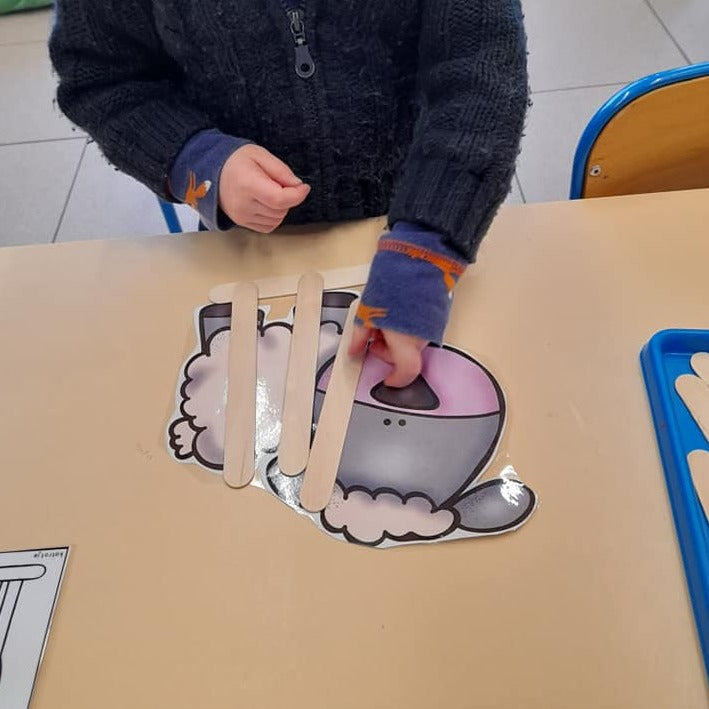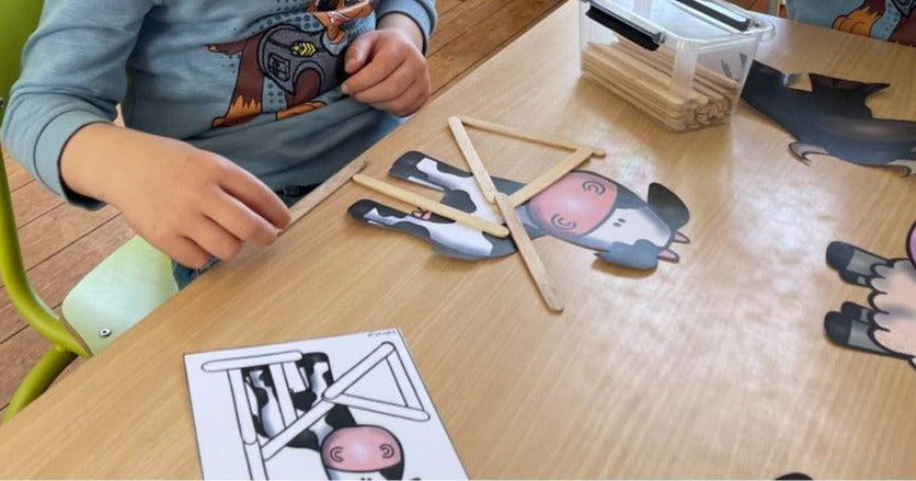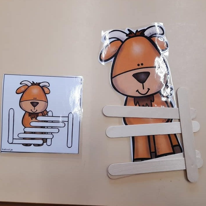 - 18 opdrachtkaarten waarbij de dieren achter het hek zitten (gemaakt van lollystokjes)