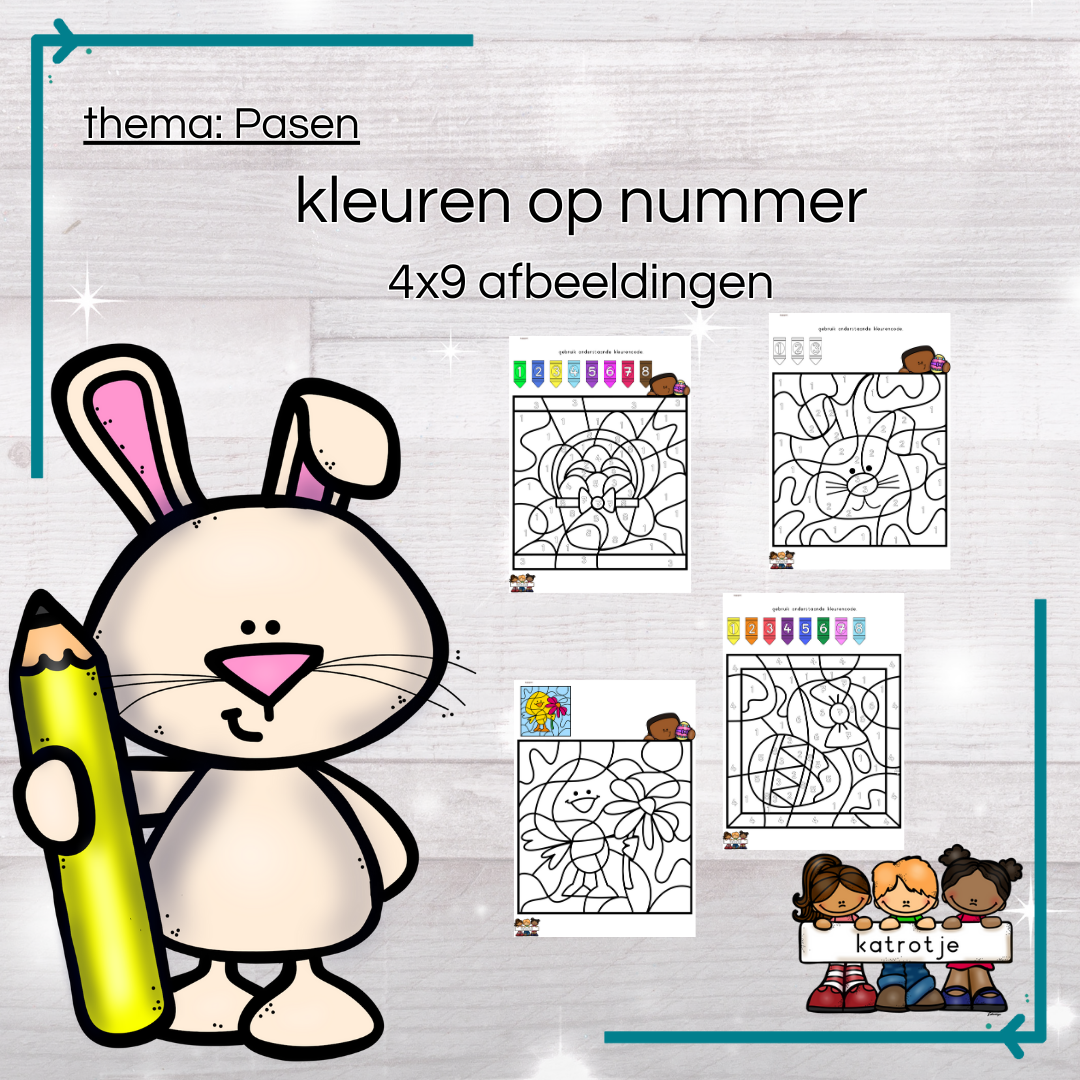 Pasen: kleuren op nummer (4x9 afbeeldingen)
