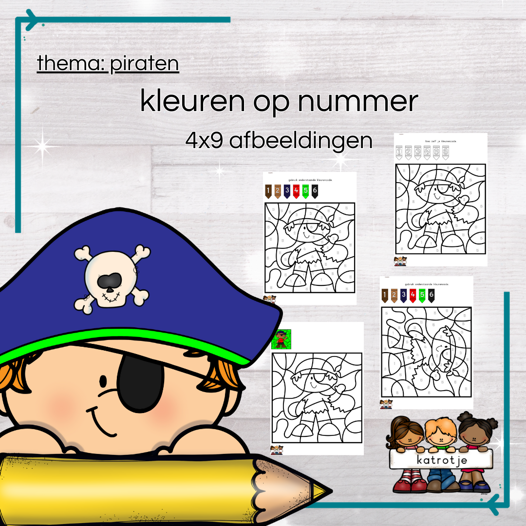 piraten: kleuren op nummer (4x9 afbeeldingen)