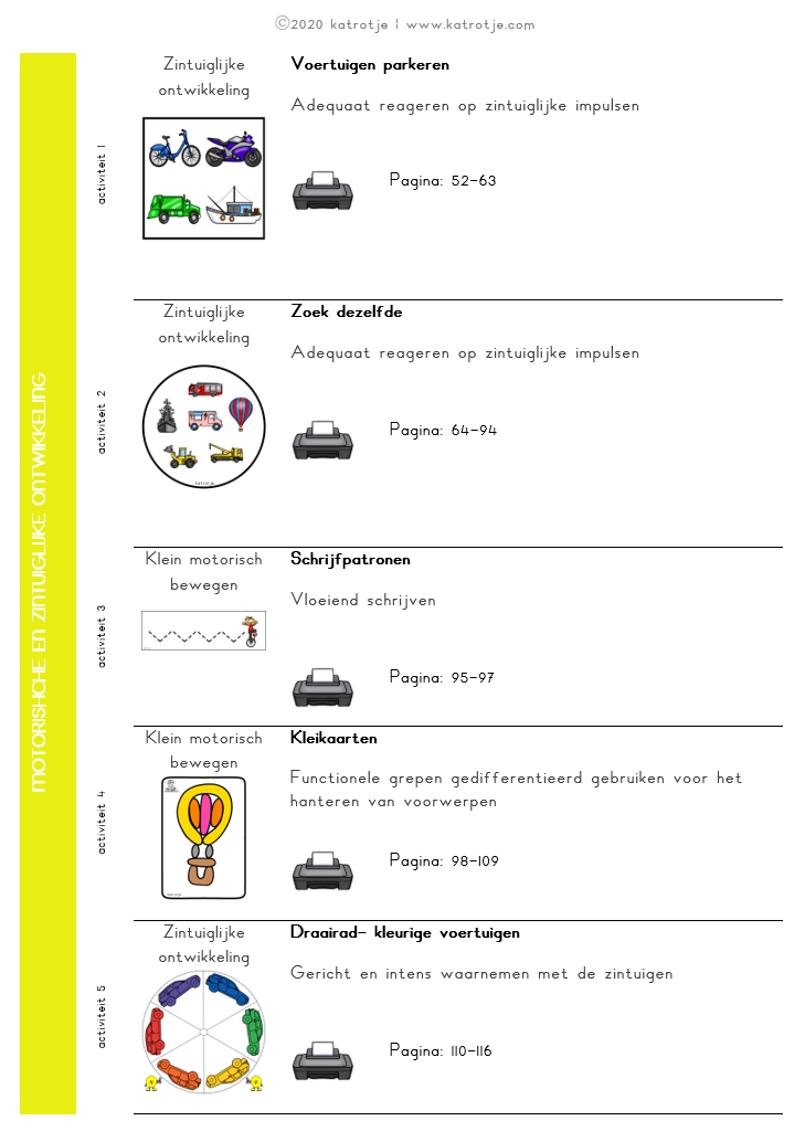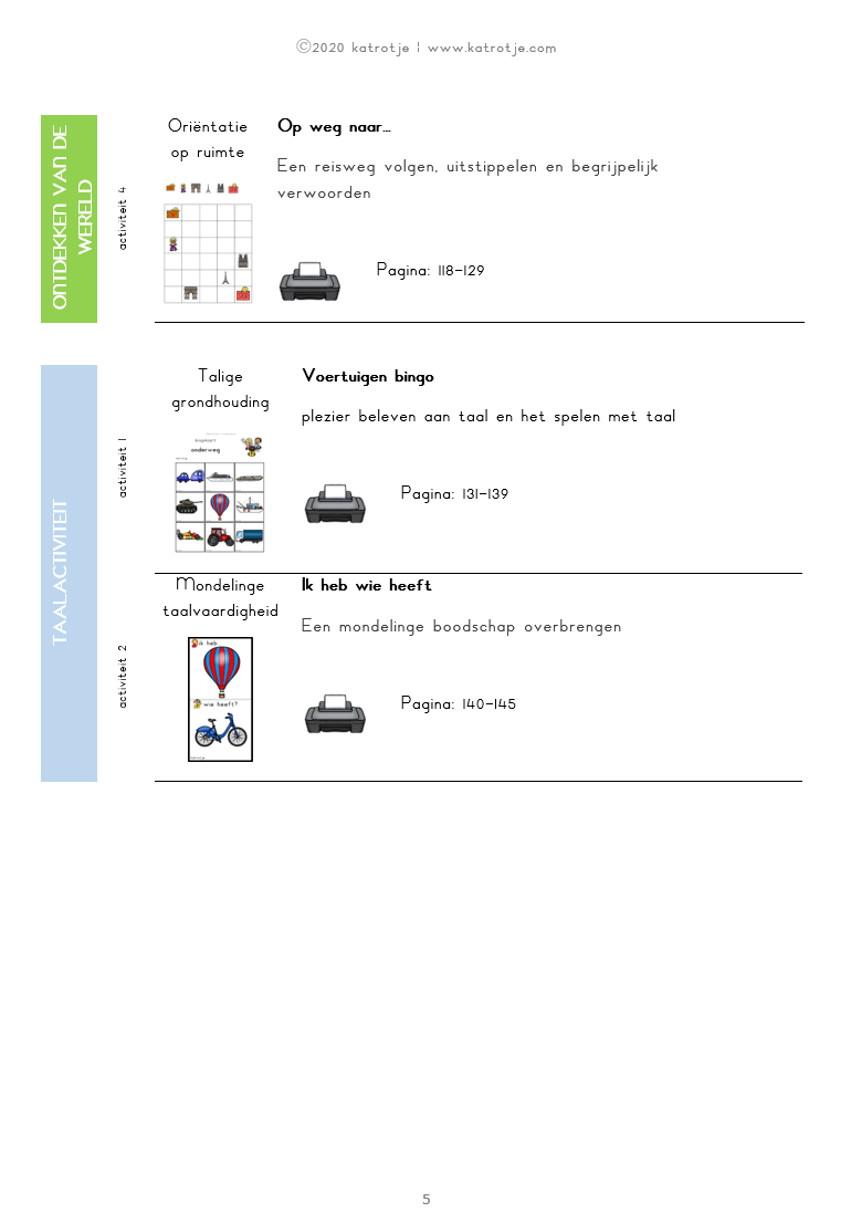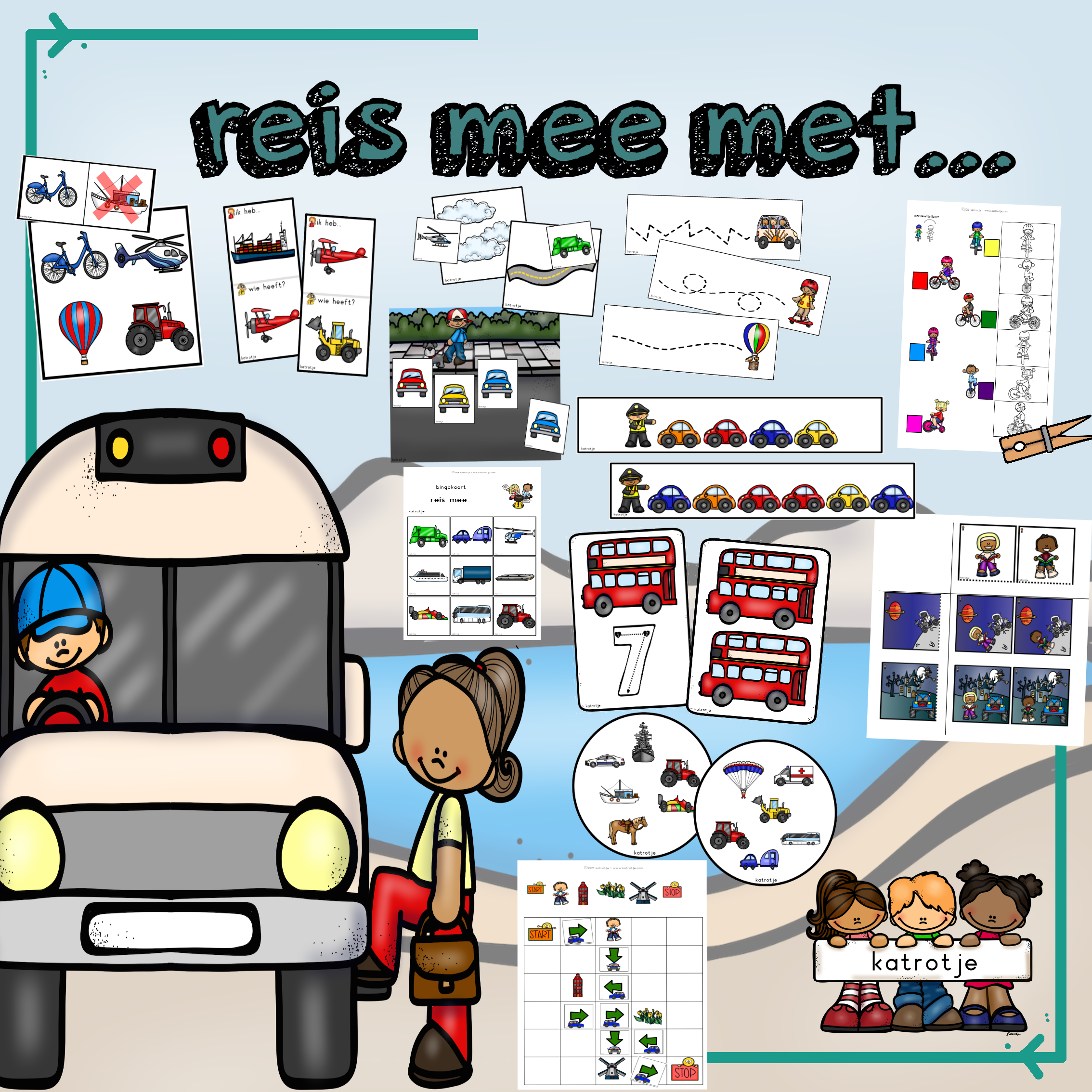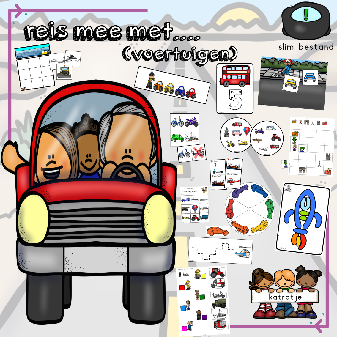 - verschillende matrixen (breng kinderen samen met voertuigen + kleurige voertuigen)