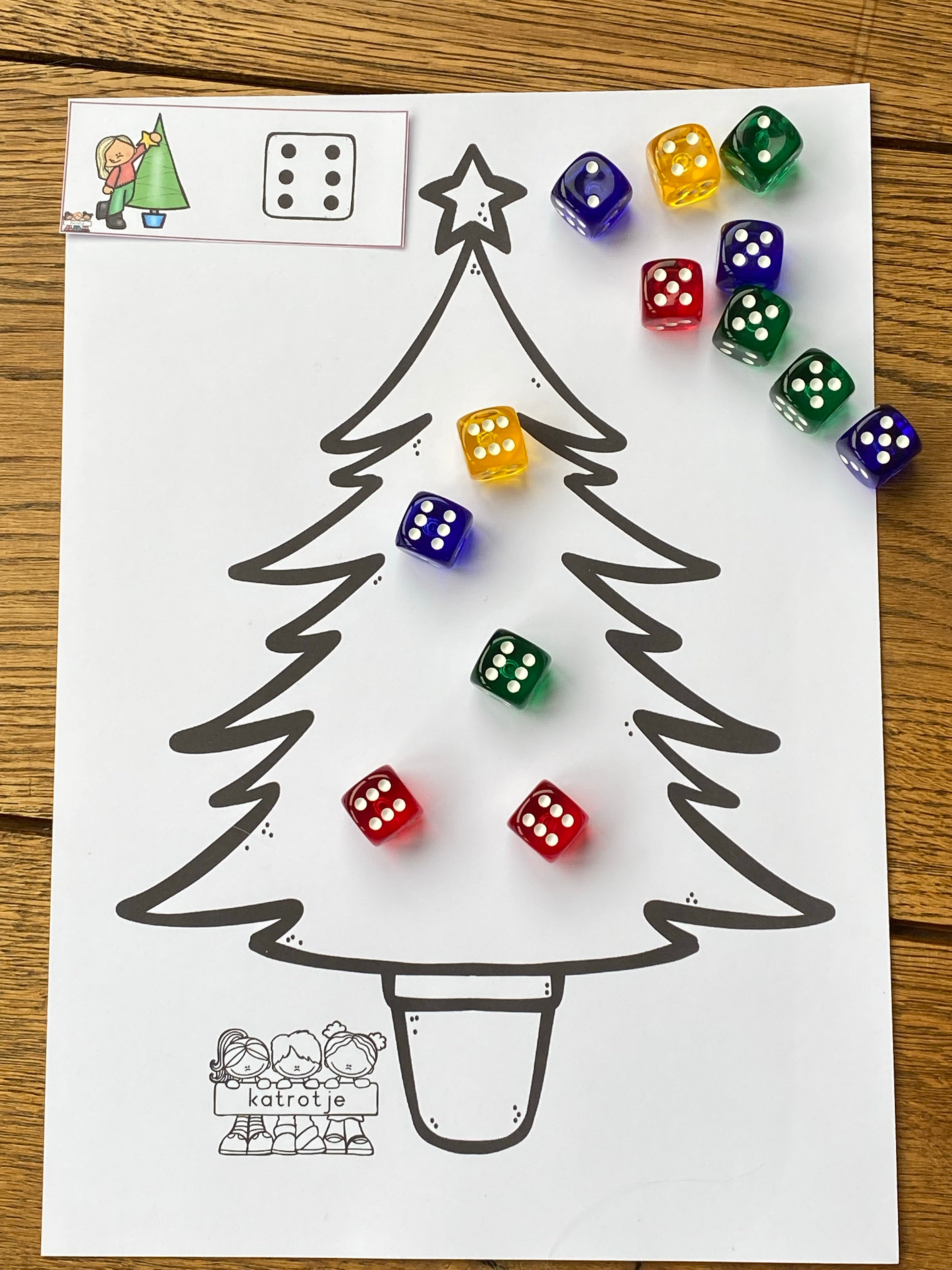 - een kerstboom versieren (met extra wiskundige opdrachtkaartjes)
