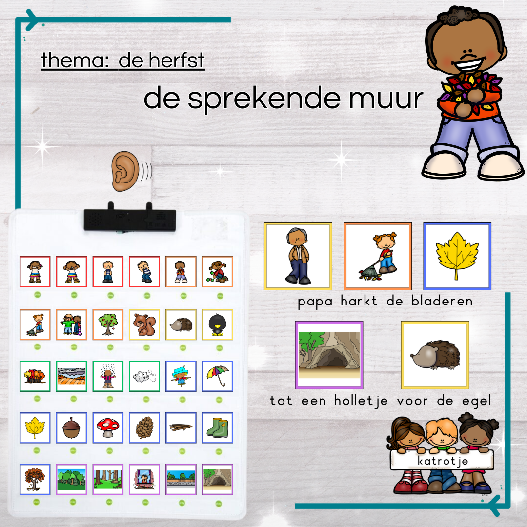 Ga aan de slag met deze reeks van 77 kaartjes voor de sprekende muur thema de herfst. In deze bundel zitten 6 soorten kaartjes rood: gevoelens oranje: handelingen geel: figuren groen; speciale woorden blauw: voorwerpen paars: plaatsen De sprekende muur moet je zelf voorzien. Deze bundel geeft standaard gebruiksrecht voor slechts één persoon / individuele leerkracht of één klas binnen een school.