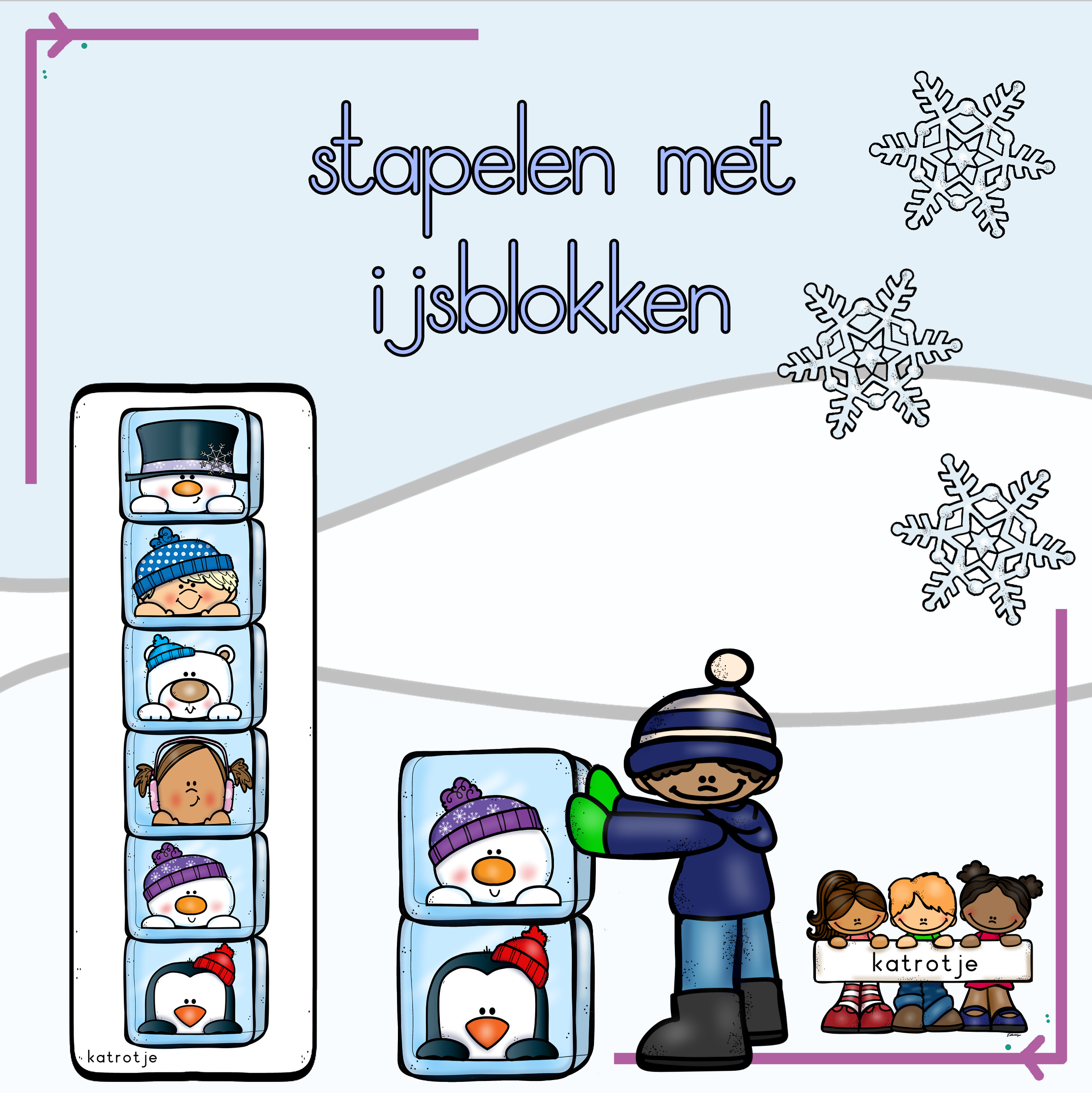 Laat de kinderen de ijsblokken stapelen volgens de opdrachtkaarten.