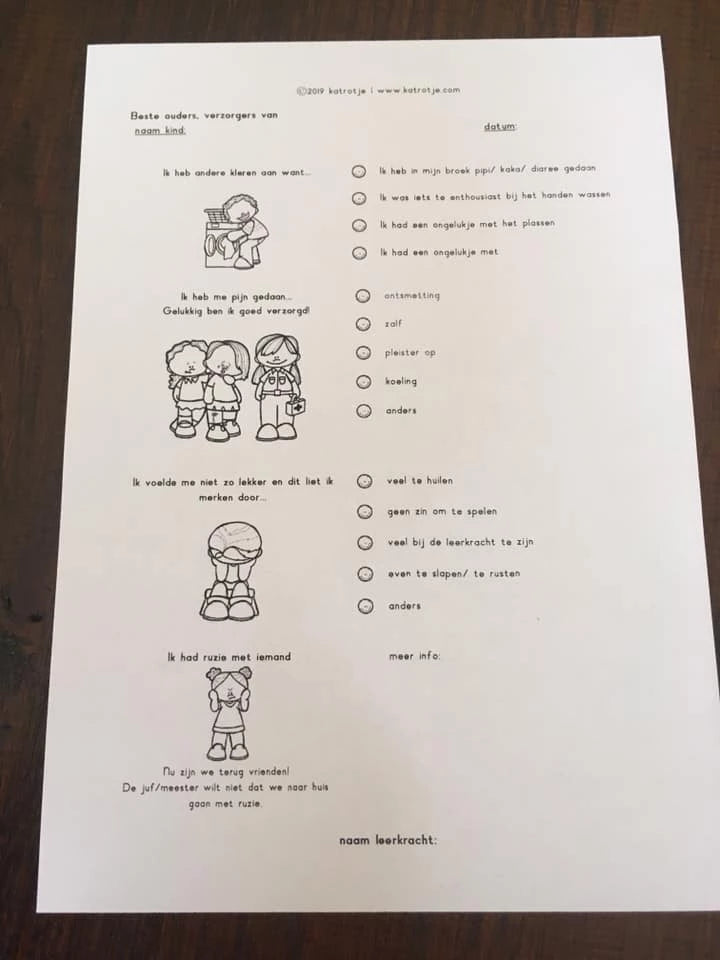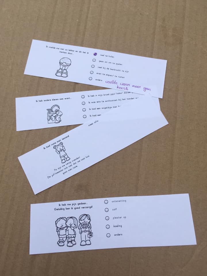 - snelle verslag kaarten die de kinderen kunnen invullen
