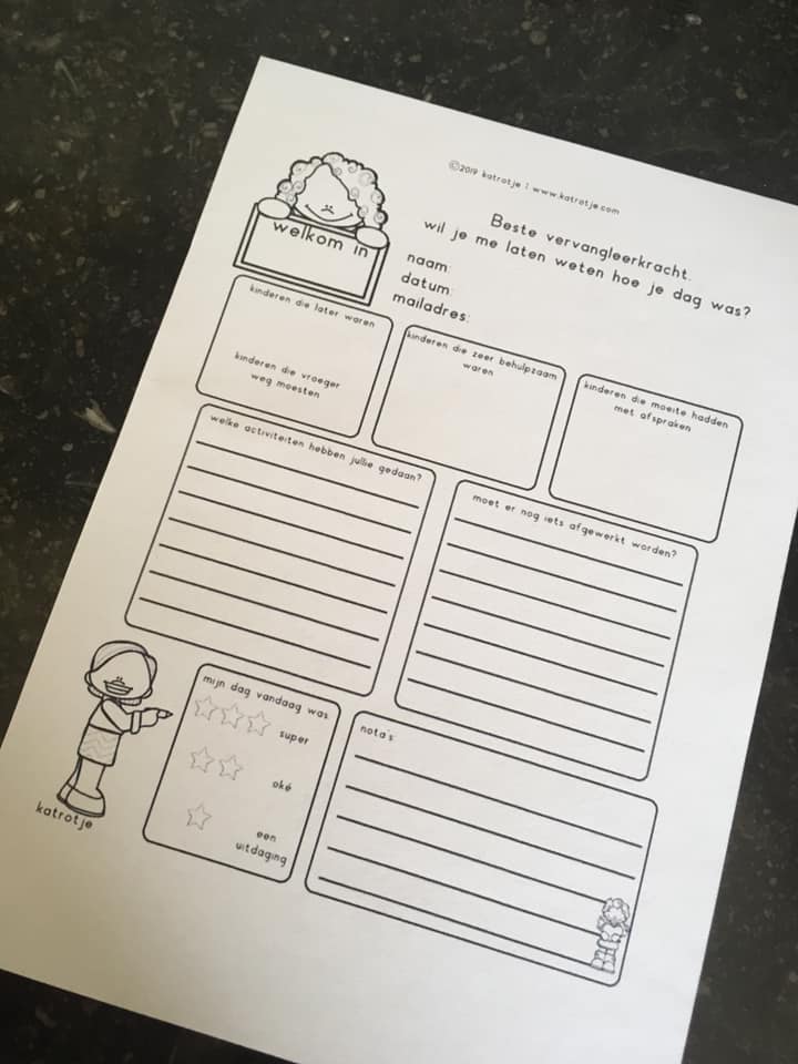 - een verslagformulier voor wanneer er een andere leerkracht voor de klas staat.