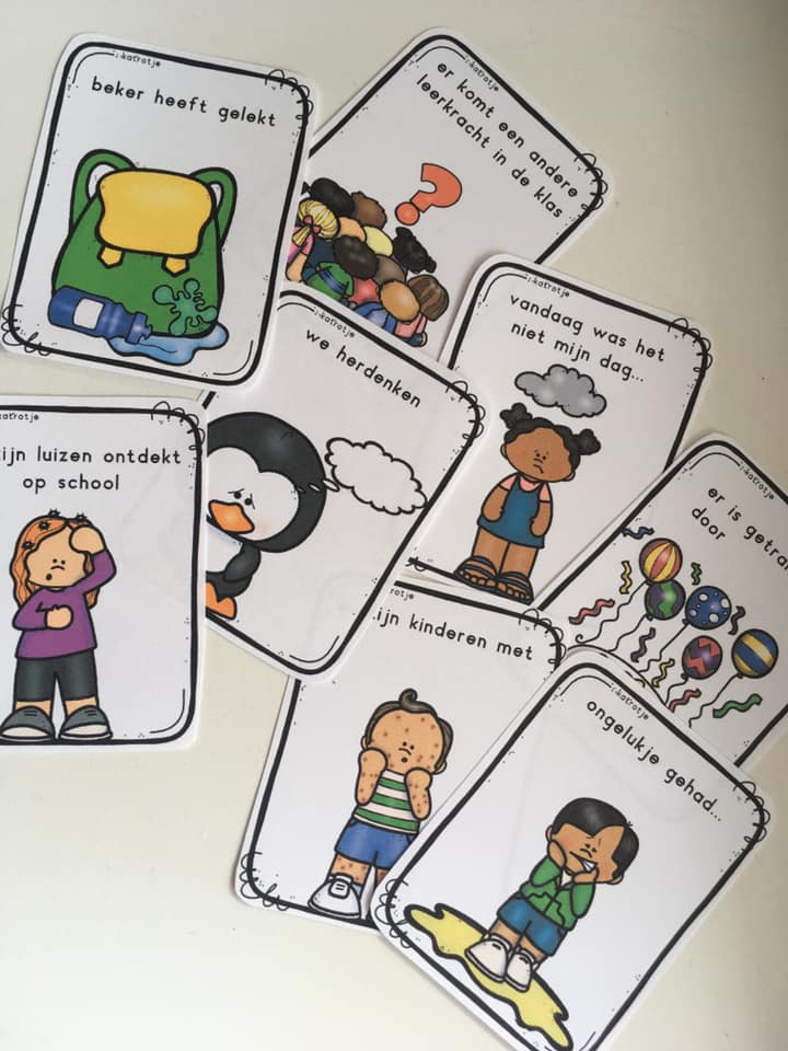 - 33 kaarten met een snelle boodschap voor de ouders (1 reeks met tekst bij de kaart en 1 reeks waar je ruimte hebt om zelf iets te schrijven)