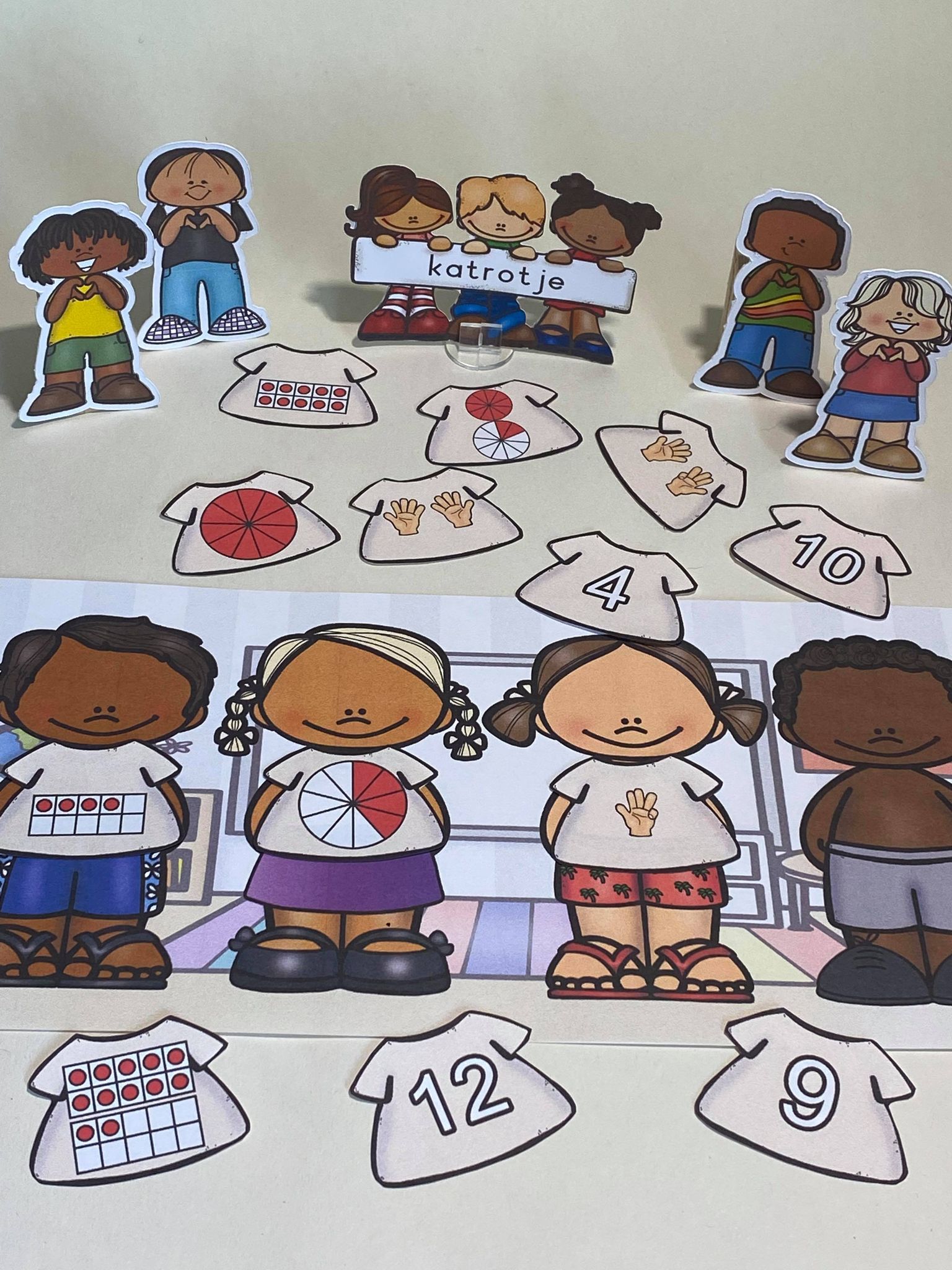- 10 kleikaarten met verschillende jongens en meisjes