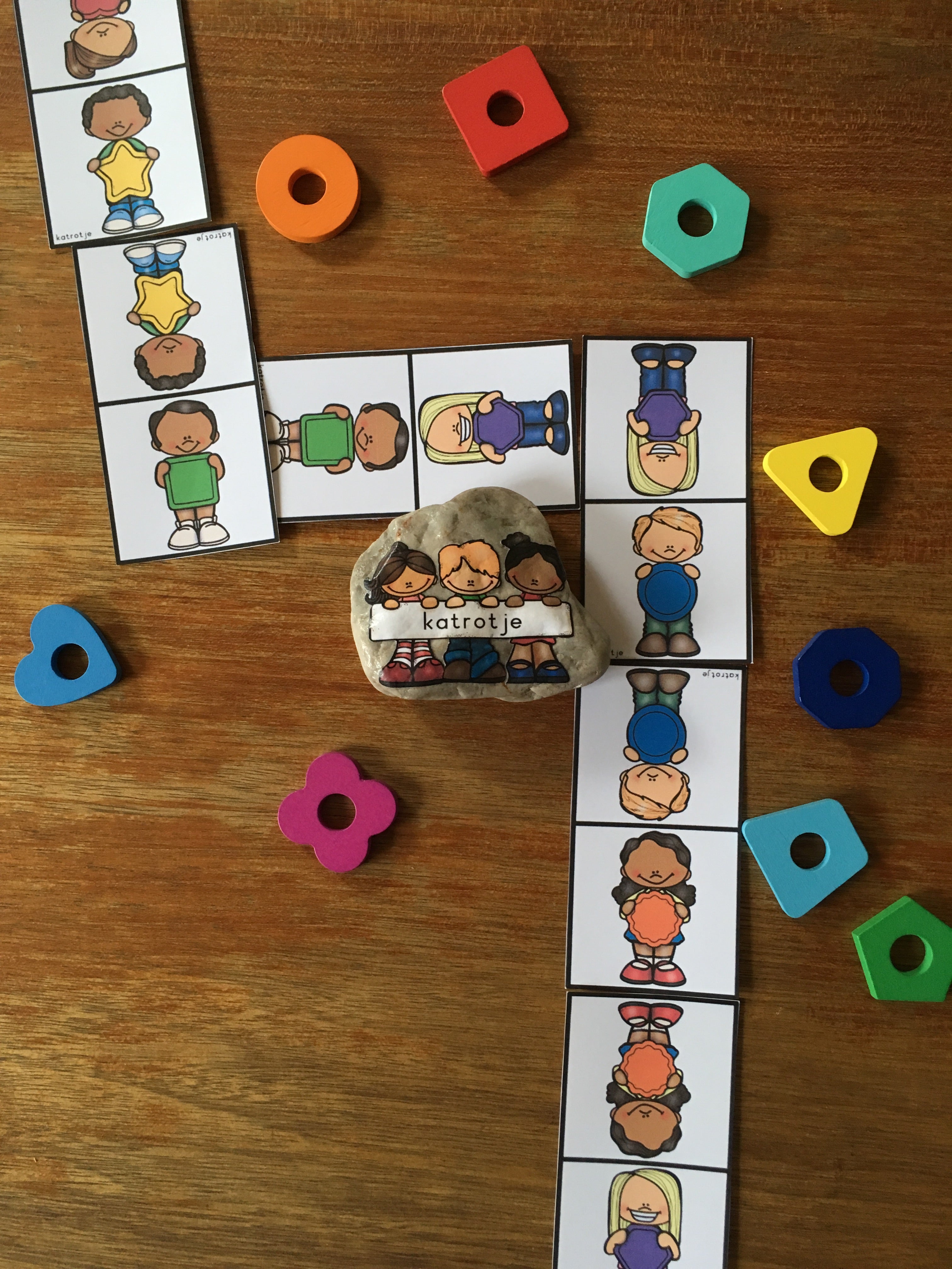 - een domino met kinderen en verschillende vormen (2D)
