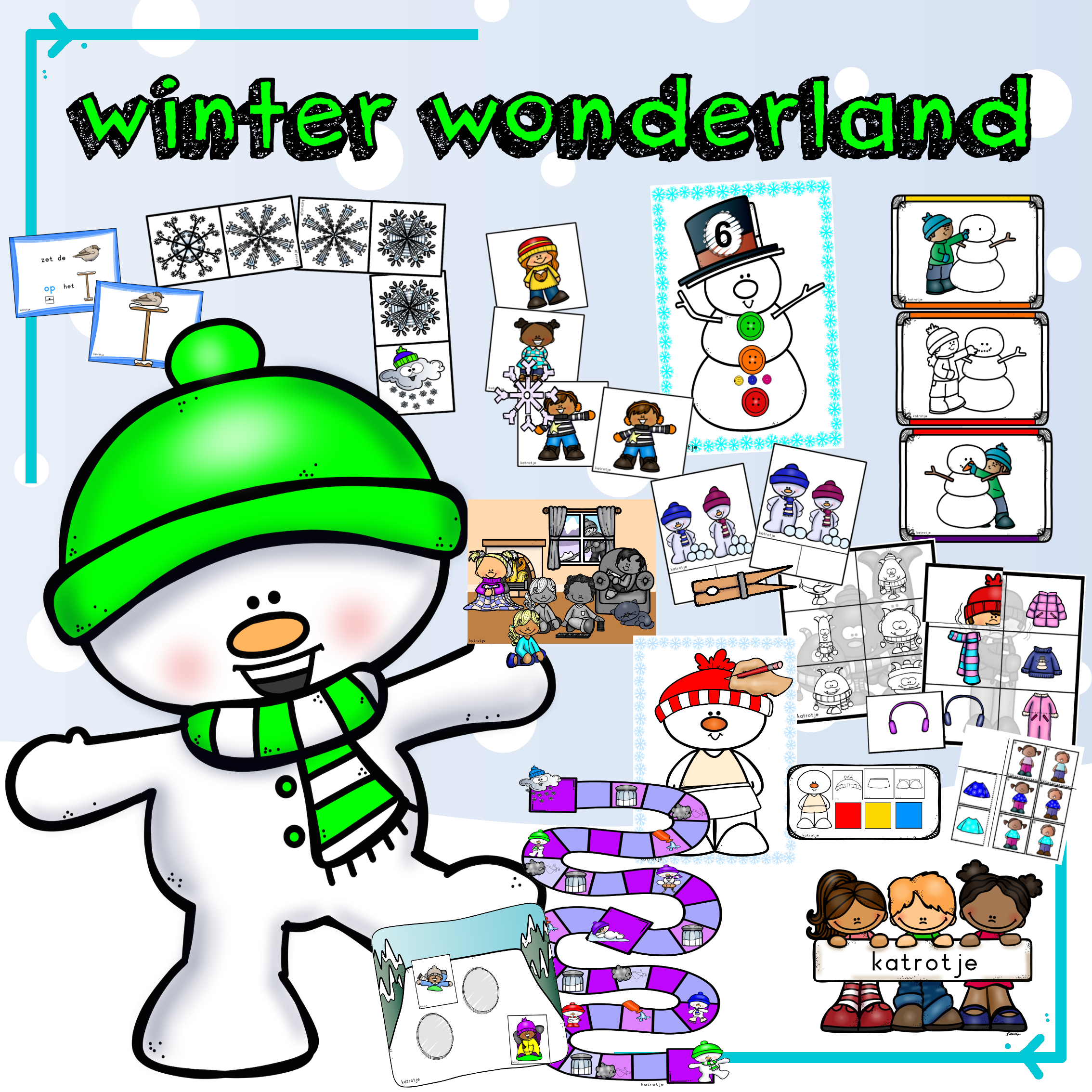 - plaats de figuren terug in de winter (met 15 grondkaarten zodat je het spel kan spelen met jonge en oudere kleuters)