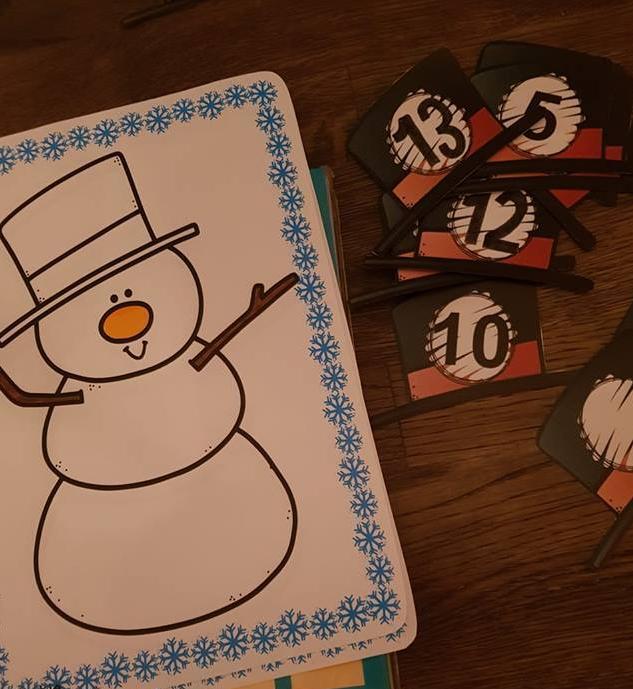 - telkaarten met een sneeuwman (van 0-10 + blanco hoeden voor eigen idee)