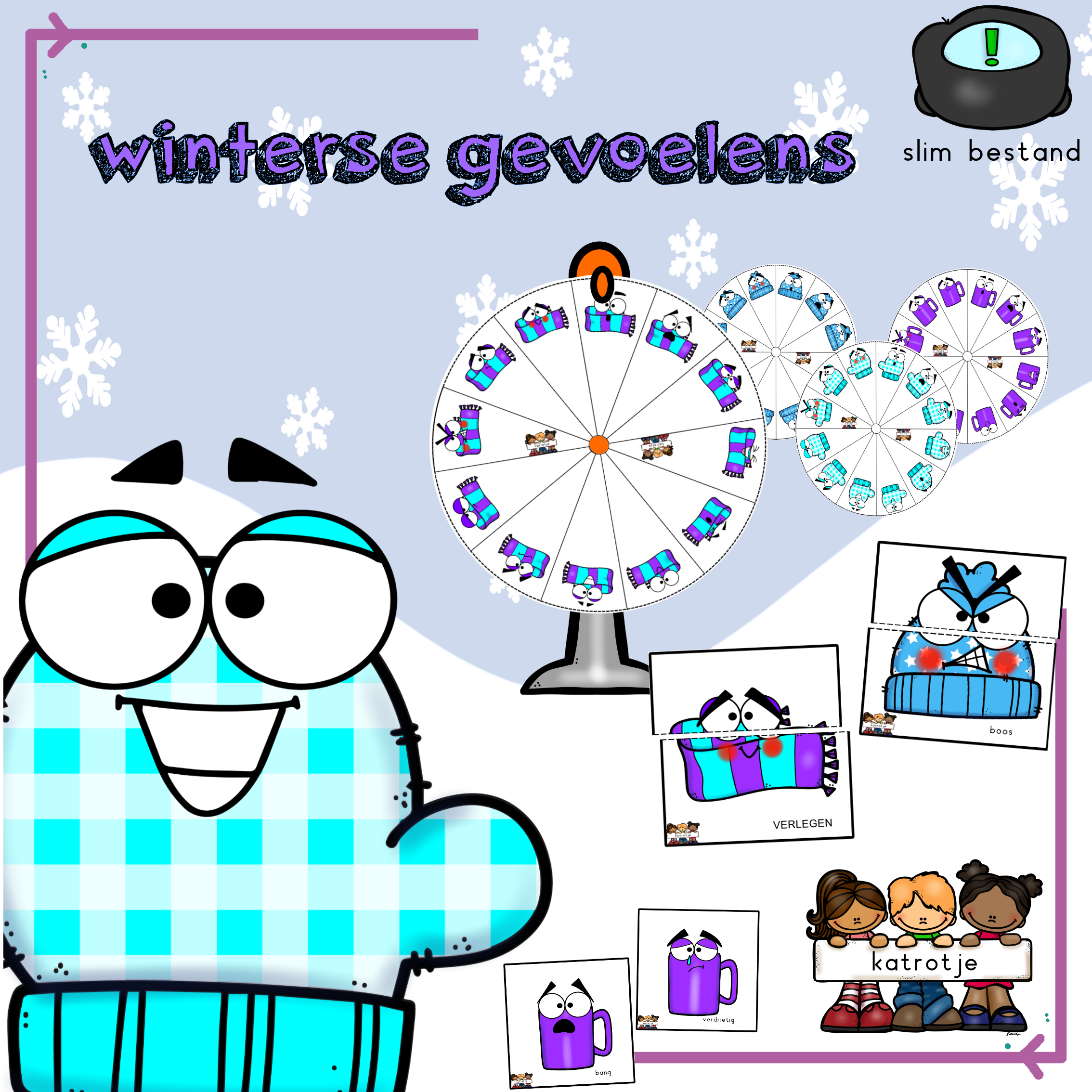 puzzelkaarten met gevoelens 4 reeksen in blokletters en leesletters